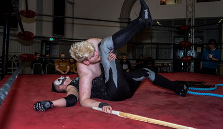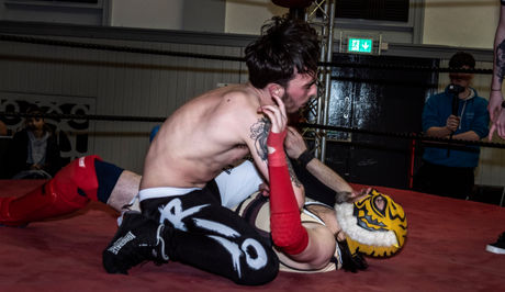 Super Knee Smash Bros (c) (Gustan Las Lamparas & Reinhart) def AnarKy (Krimson Khaos & Ryan Riot)